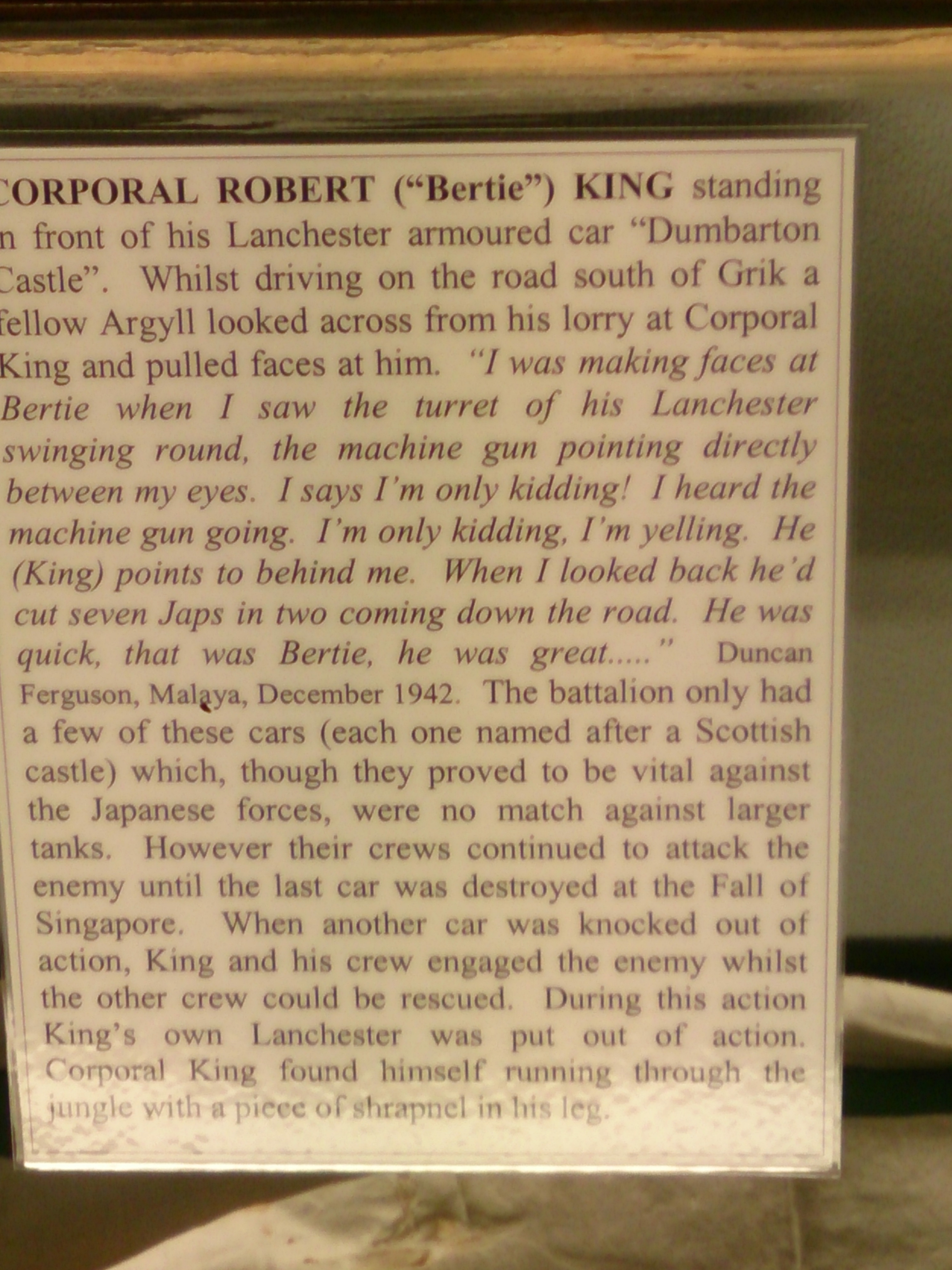 Norrie Posted April 10, 2016 Posted April 10, 2016 This picture was taken by me at the Argyle and Sutherland Highlanders museum in Stirling Castle...it was only while reading the caption, I realised that is was a story told to me by the writer, Duncan Ferguson, an old friend of mine, who suffered much degradation at the hands of the Japanese after the fall of Signapore. So much so, that when he was offered "reparations" by the Japanese Govt , he told them where to put it...:) The stories he used to tell me made my toes curl....he wanted to let everyone know what it was like.....What a great man he was...:) 1