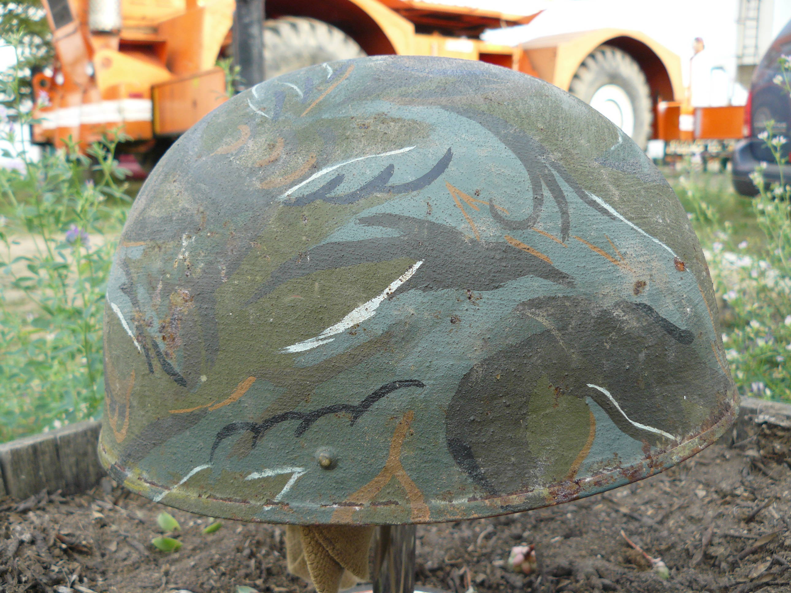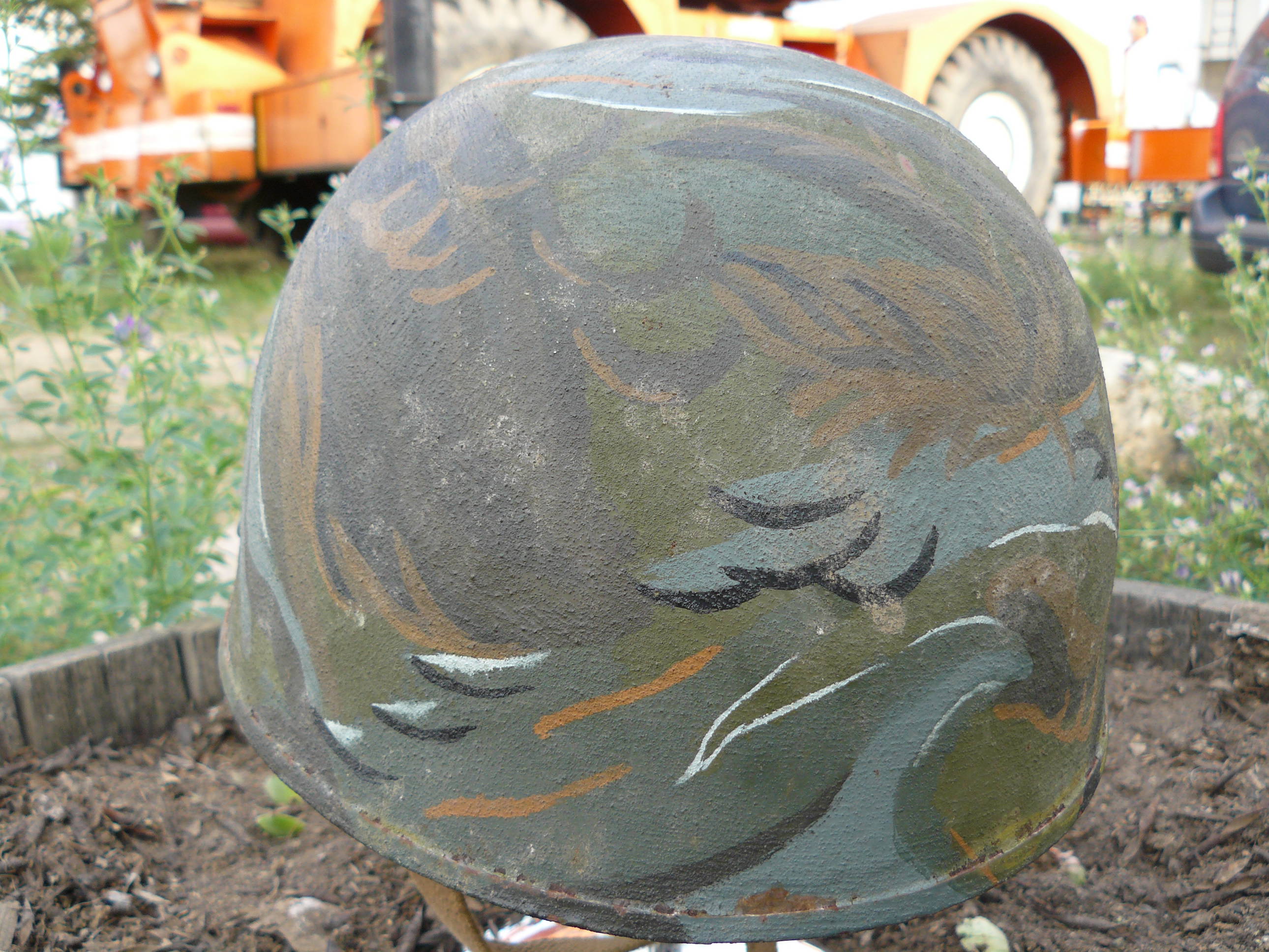 Mark K Posted April 18, 2016 Posted April 18, 2016 (edited) I purchased this Mk II HSRAC strictly as a curiosity as I really liked the camo pattern and have not seen an example like it before the camo paint looks to have been on this example for some time and I can see legitimate age to the paint with some scuffing and scratches and a little rust poking through here and there in a few places which is evident by the images of the dome and the helmet rim.So IMO the camo paint has been on it for some time anyway it is sporting a very late model Mk 5 liner and a Mk 4 chinstrap. if nothing else it make for one hell of an interesting display and conversation piece and it displays rather nicely in my collection.So this does raise the question have any of you gents seen a similar camo pattern used on a tin lid before................Regards Mark Edited April 18, 2016 by Mark K