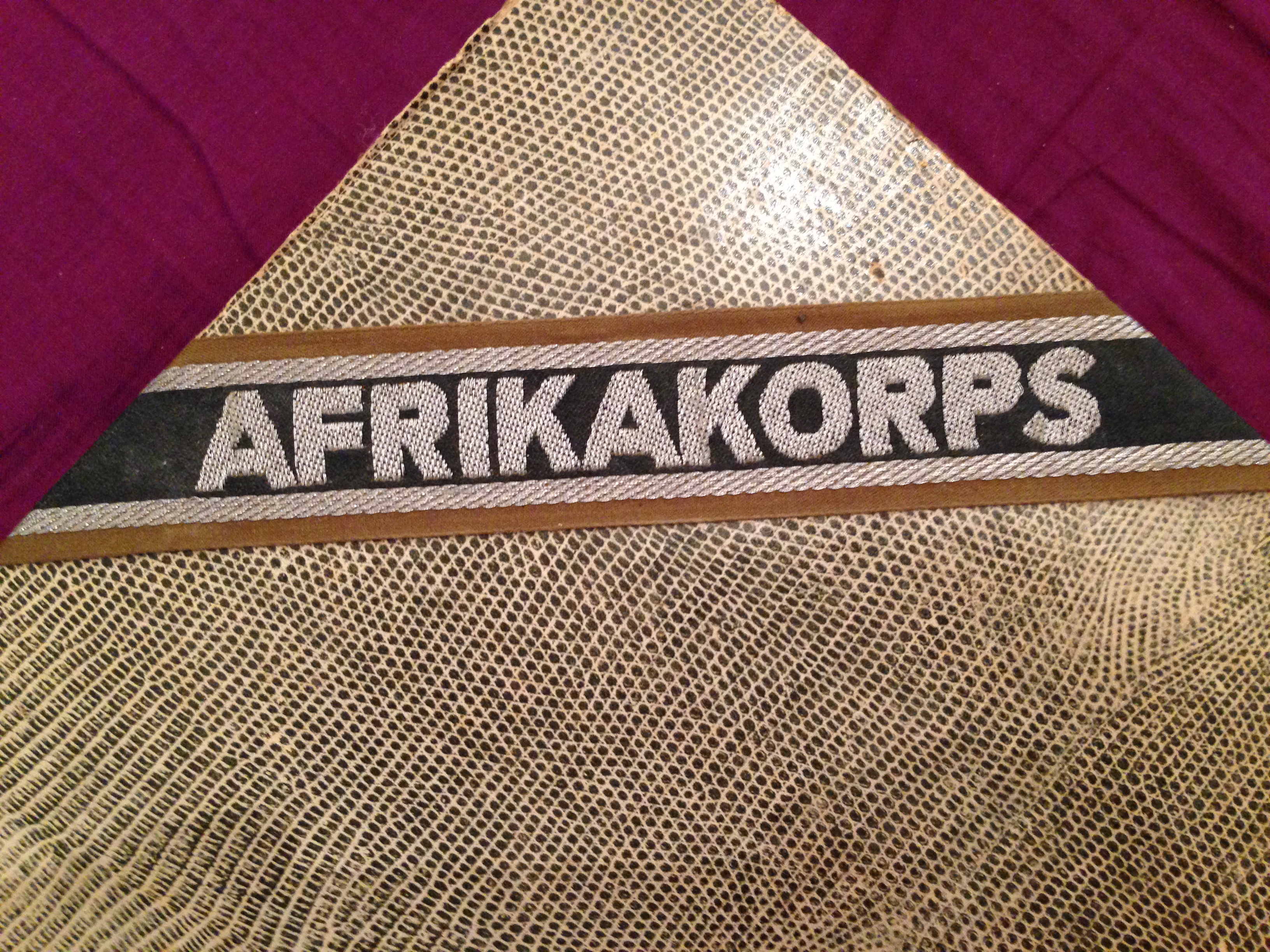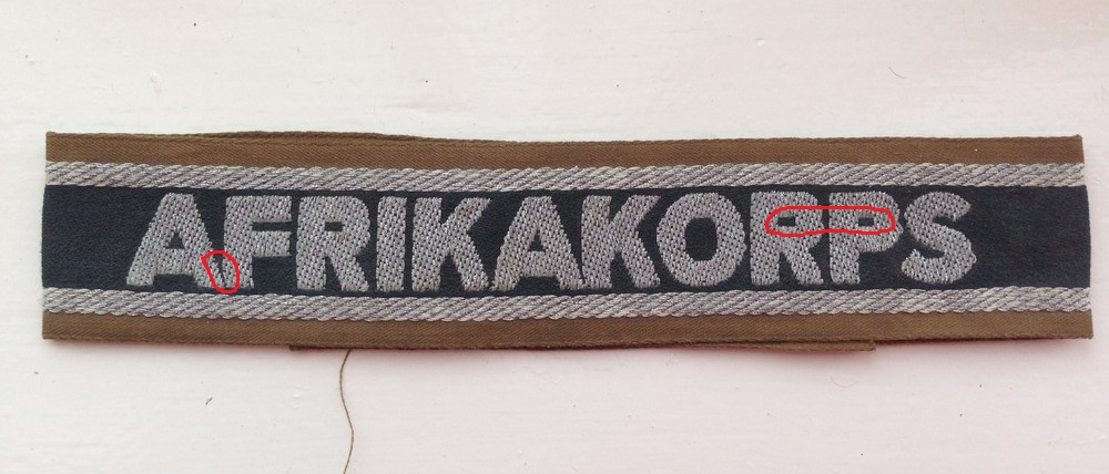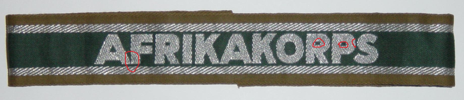 DAK D Posted May 4, 2016 Posted May 4, 2016 (edited) Hi @Steve T Your title is a fine and original variant Afrikakorps cuff title. You don't know how happy I am to see more evidence that these disputed titles are indeed original. Here is one attached to the photo album of a Signals unit member that was killed or captured at El Alamein, but this was not enough evidence for our academic friend. The extra photos are of another original title in my collection and the highlighted areas in red are the reason these titles are regarded as fakes. I believe the confusion is due to the diamond back/tartan weave fakes that are copies of this original variation. D Edited May 6, 2016 by DAK D 1