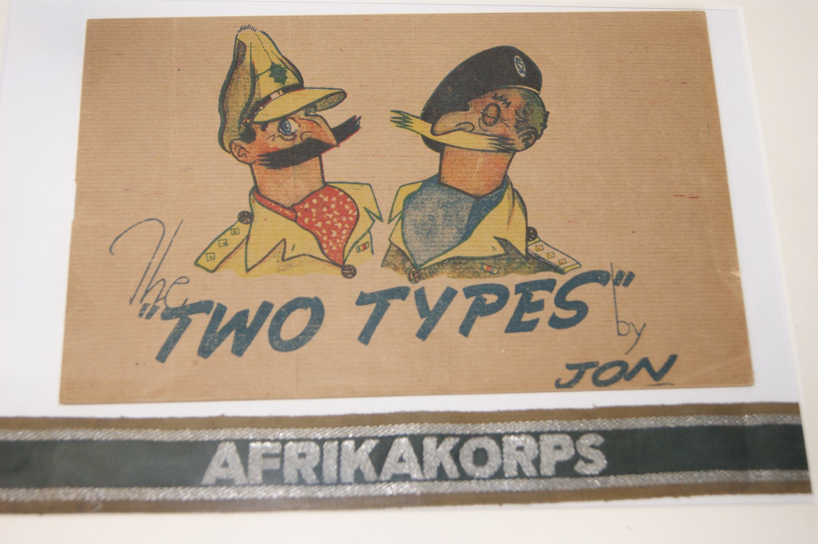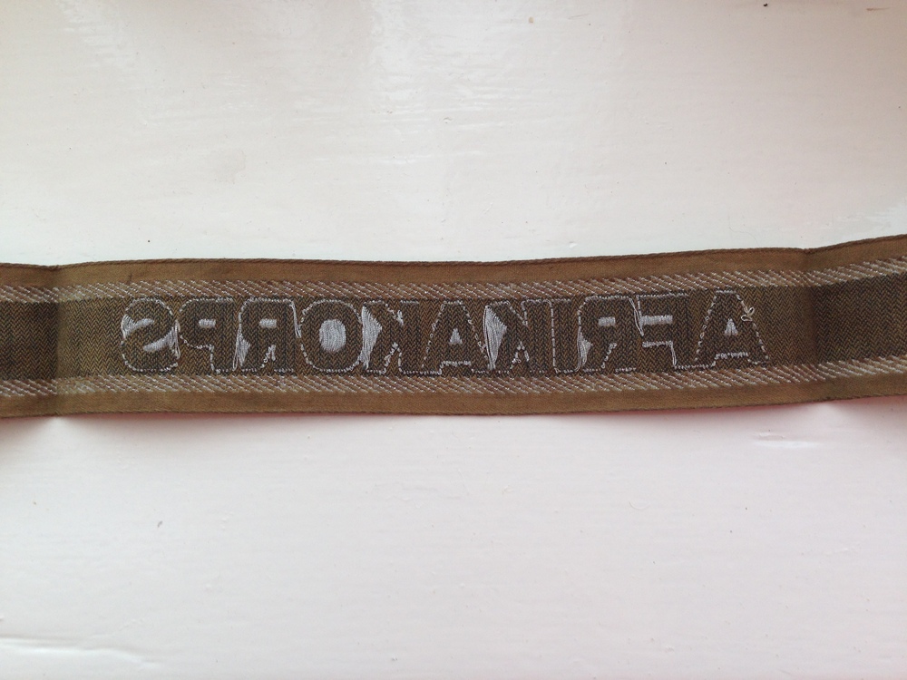 Steve T Posted May 4, 2016 Posted May 4, 2016 Weird how things happen really. This happened a couple of years back now but still amazes me. You would think that, of all the people in the world, your mother would know what your hobby is. I assumed she did, especially as she had to put up with my incessant model making during my childhood and my insistence on showing her my museum whenever something new gets added to it, (frequently!!). Imagine my surprise when she turns up at my house one day, has a cup of tea, chats about this and that and, just as she's leaving, reaches into her handbag and says 'Oh.....nearly forgot. I brought these for you. Thought you may like them'. I stared in disbelief at the cuff title and little booklet she handed me. 'Where the HELL did you get these from??' 'Remember Mr Lewis,. the old chap I used to look after? He had them. He fought in Africa and took the cuff thingy off a POW'. 'Mr Lewis? That was 10 years ago! How long have you had them?' 'About ten years. He gave them to me for you but I forgot about them. Just found them when I was clearing some stuff out of the attic' I could say no more......... Amazing. Anyway, here they are. I have them framed on the wall in my museum. The cuff title is in superb condition and, I have been assured by numerous experts, (I'm expert in weapons and ordnance, not badges and cuff titles!!), it is an original. The little cartoon book is rather humorous 4