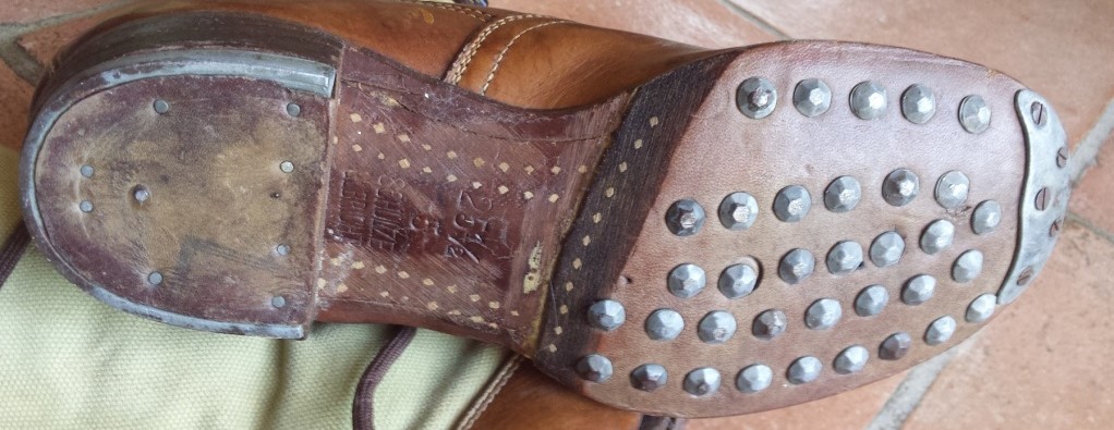 DAK D Posted May 10, 2016 Author Posted May 10, 2016 (edited) Hi @Manu Della Valle, I am happy you like them Manu They have definitely been re-nailed and interestingly they had metal cleats on the side at one time on the side of the heels and soles, although there's only one left remaining now. The following photos are typical nail applications on tropical boots when they left the factory, but many were altered in the field. Both early pairs have no heel plate and that is not standard, but it obviously happened. 1/ Third pattern made in 1942 2/ Second pattern made in 1941 3/ First pattern made in 1940 D Edited May 10, 2016 by DAK D 2