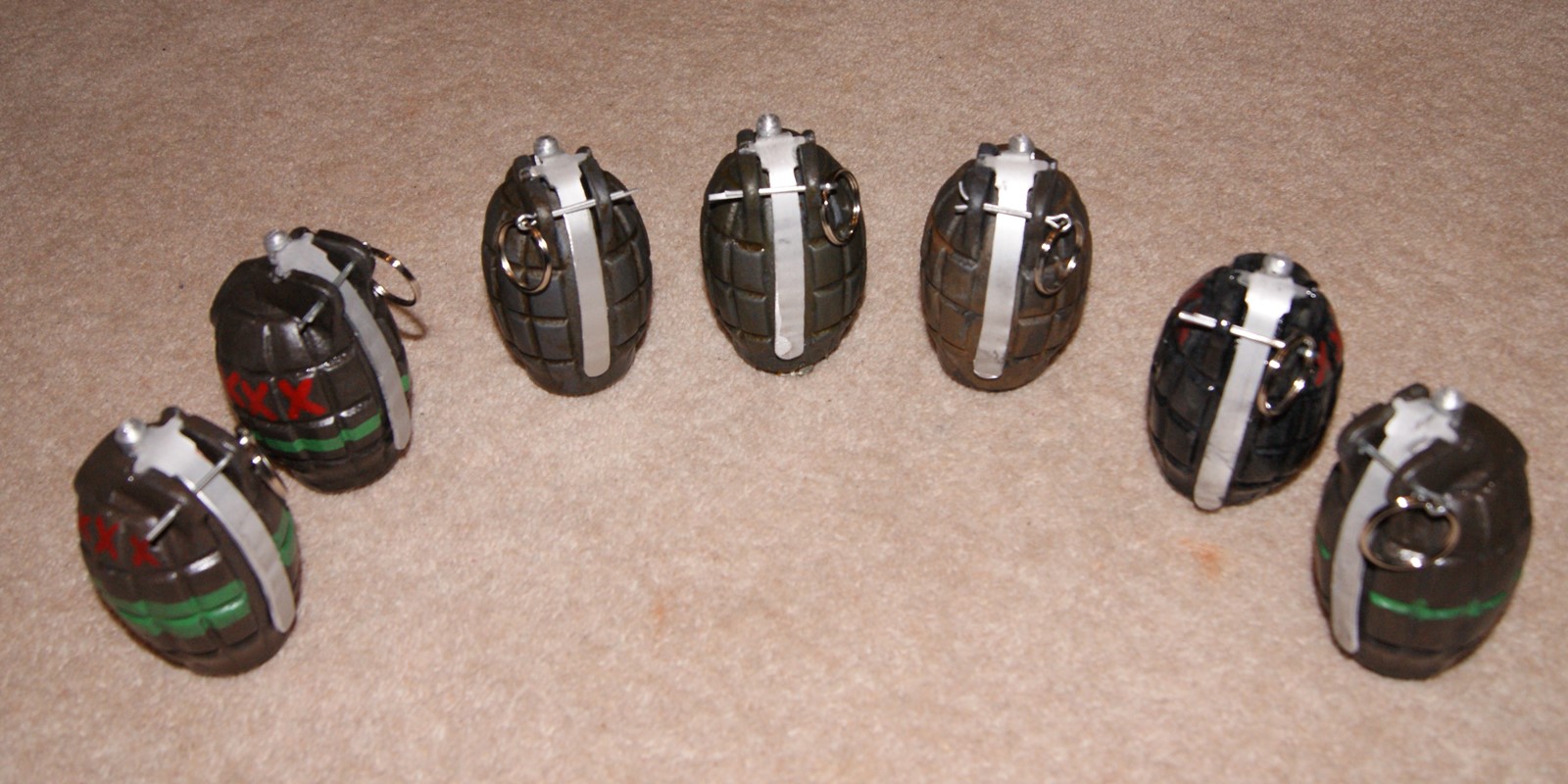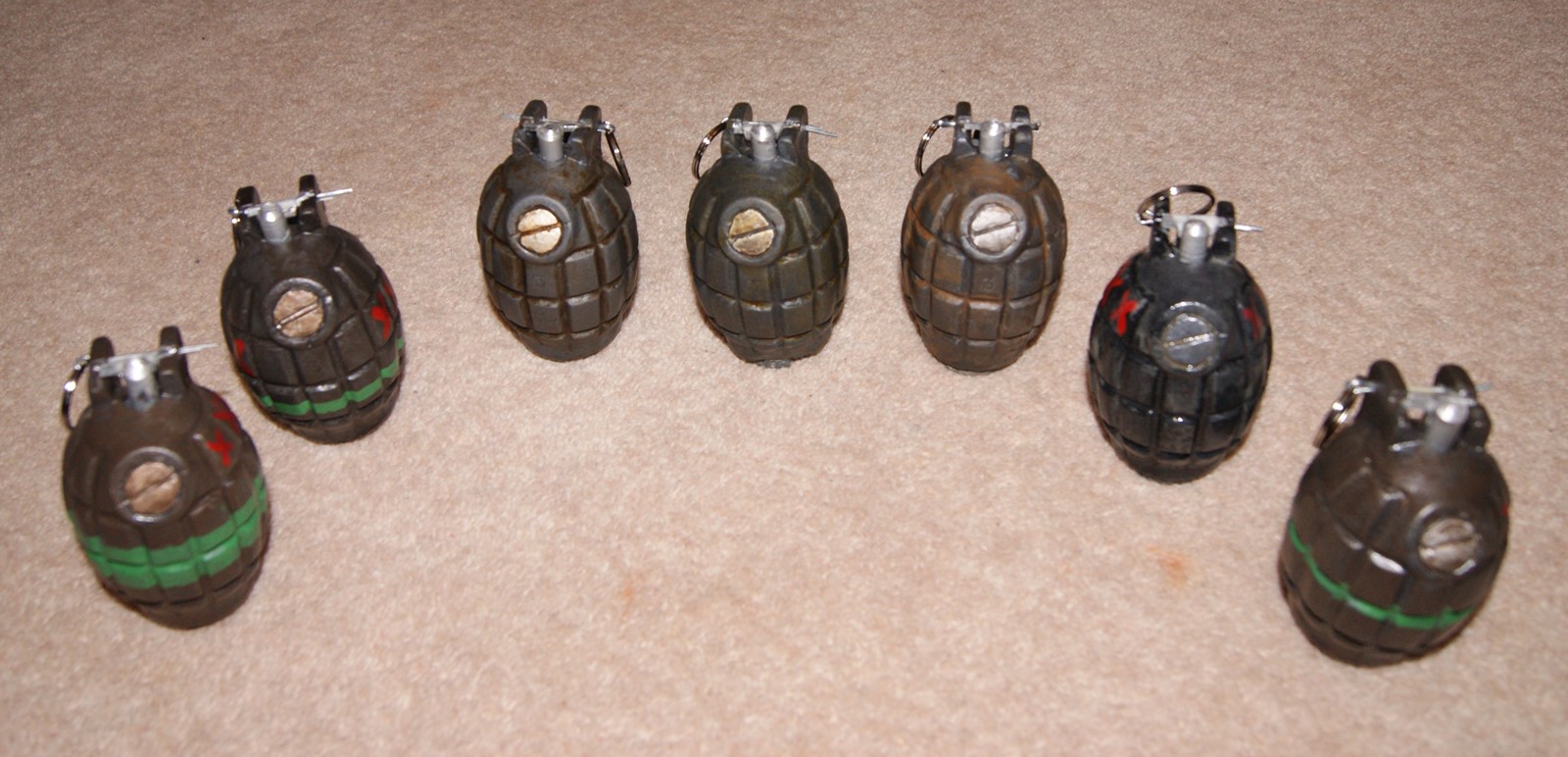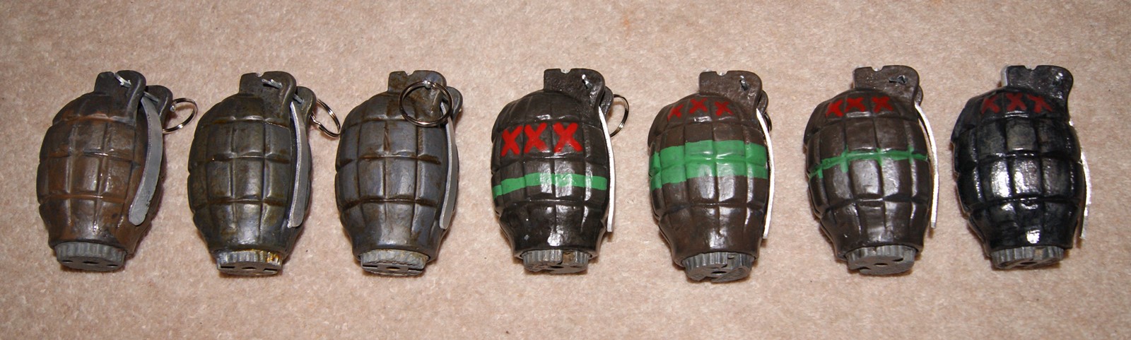 Steve T Posted May 13, 2016 Posted May 13, 2016 Hi all You will, I'm sure, recall the replica No 36M grenades I made and posted here a few weeks back. Well, after a bit of help from a friend, (he had just the right tool I needed ), I have now 'upgraded' them. I have removed the wooden dowel used originally to form the striker column and replaced it with a piece of aluminium rod. I shaped the end on a bench grinder, and cut the groove with a file. I then manufactured the spoons from sheet aluminium, using an original as a template, cut them out with a jigsaw, then bent them into the correct shape. I think this has improved them greatly. What do you reckon? Not bad for plaster of paris and Humbrol paints! . 3