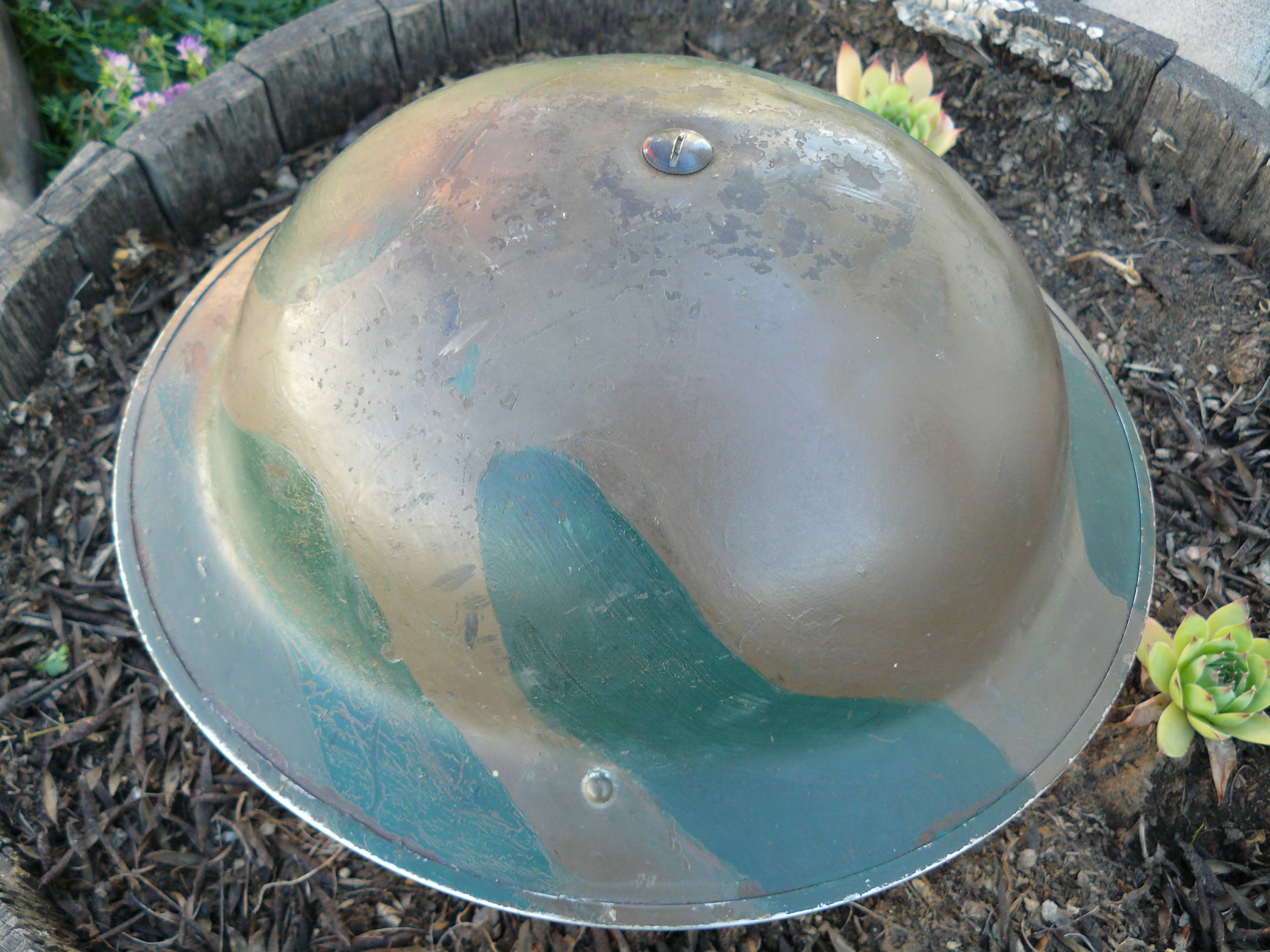 Mark K Posted May 20, 2016 Posted May 20, 2016 (edited) Morning Gents I was lucky enough to secure this Camo painted Mk II from a friend and advanced collector here in Canada some time ago and an interesting helmet it is as Canadian camo painted Mk II helmets are about as rare as hens teeth as most were repainted and used post war. This particular example is a 1941 dated C.L./C. steel lot batch number 33 it is sporting a 1941 dated VMC liner the owners name and service number have been scratched into the paint on the under side of the shell near the rim should make for a good research project. I do rather like the patina, age and crazing to the paint on this one even though only two colors were used I myself consider this a three tone camo paint job as the original painted finish was incorporated in to the pattern the green over paint is quite striking and bold and IMO is of the same color used early war time on Canadian and British vehicles and mobile equipment. I am still on the fence as it were to if this Mk II was used in the ETO and or if the pattern is a camo ( referred to as the Mickey Mouse pattern) that was used early on in country (Britain) During the quite times known as the Phoney War . I have included an image from Juno Beach were there is a very similar pattern visible on two of the Canadian soldiers helmets of course with out seeing the image in color it is impossible to tell but does make one consider the possibilities. I would say the image was taken with in the first couple of days of the D-Day invasion. Regards Mark Edited May 20, 2016 by Mark K 1