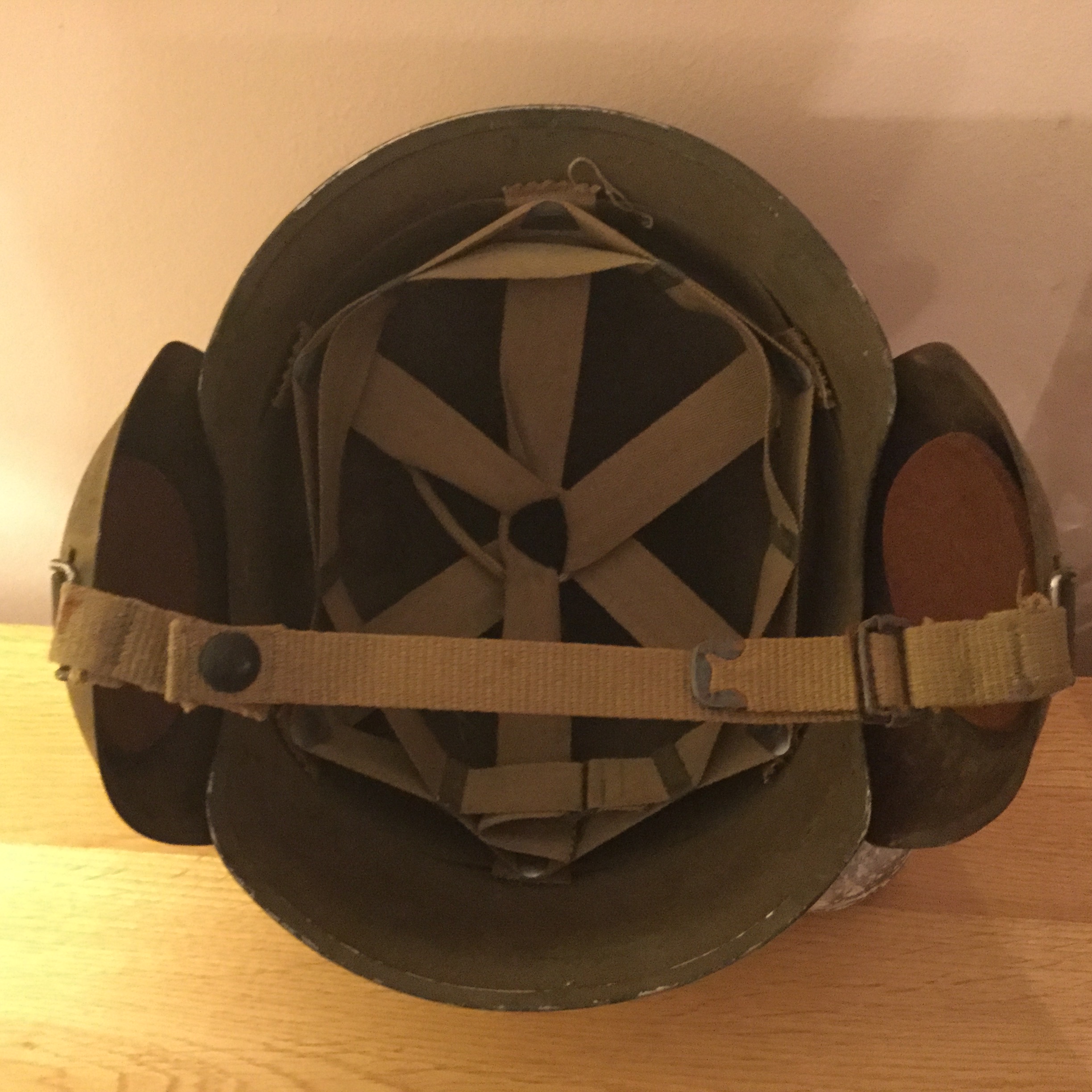 Norrie Posted September 8, 2016 Posted September 8, 2016 Phew...this collecting lark is quite tiring.......sat up all bleedin night tonight waiting for this ending on Fleabay US....,...and got it for a lot less than I bid on it... REALLY happy with this one, It'll be waiting for me in California when I get there in a months time...:) This is a later Mk5 AF helmet, seemingly saw service in the Pacific on B-17's...in great nick, and only missing the felt on the ear pads...AGAIN...thanks @Fred Karno's Army What's the weight allowance again??