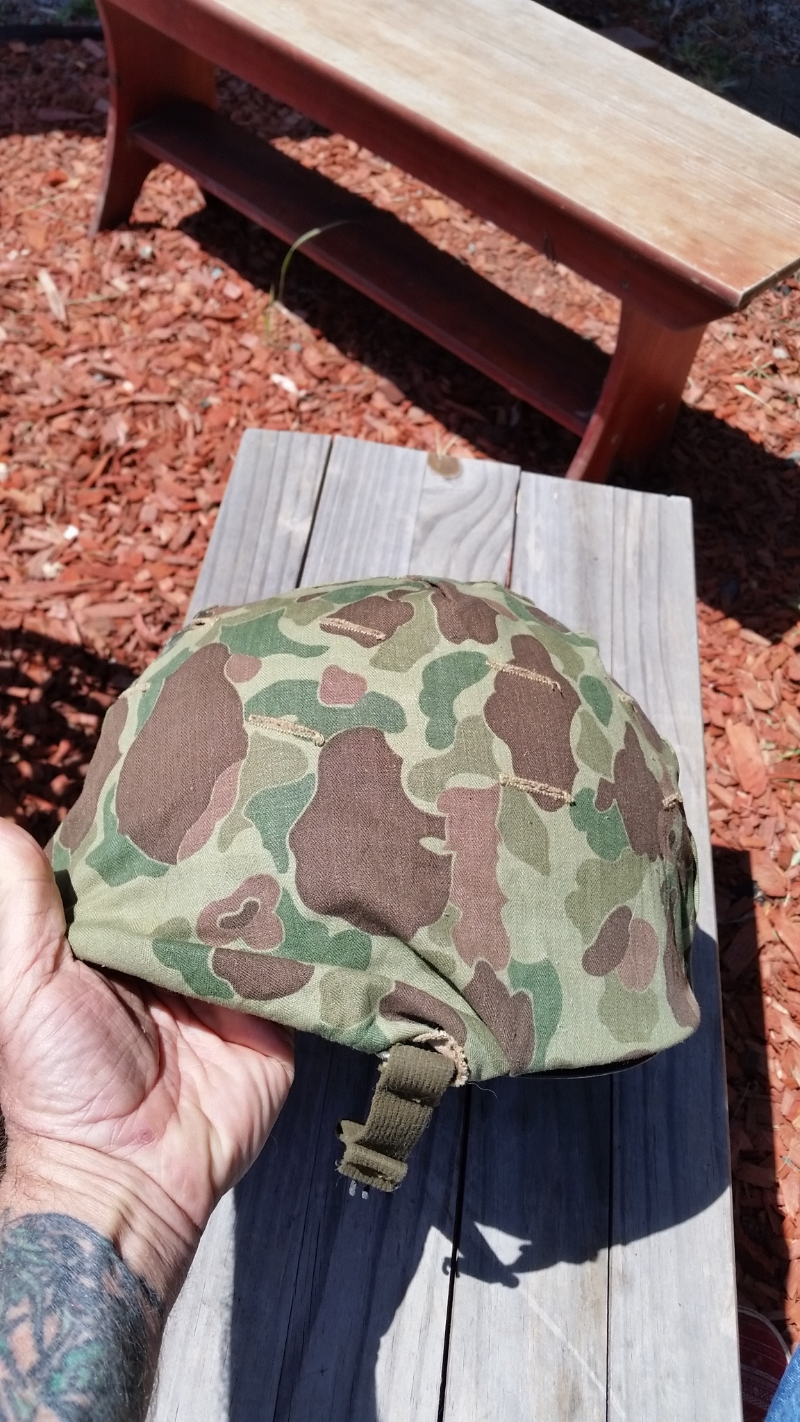 Davejb Posted May 17, 2017 Posted May 17, 2017 Nice original helmet with a great camo cover, pretty rare to see one with the motif in place, but it would be nice to see the metal part of the helmet 1