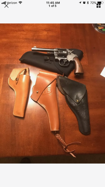 Rjdavis98 Posted December 13, 2017 Posted December 13, 2017 Ok, I'm new here. I do not collect military items or have any knowledge on military items, but I love guns. I have a question, but there is a bit of a story that goes along with it so that you may be able to answer my question. I am the only one in my family who has an appreciation for firearms. With that being said, My uncle (Dad's half brother) gave me a gun. The gun is a Colt Model 17, government issue. My uncle inherited the gun from his uncle (no blood relation to me) some time ago. His uncle was a Seebee in the Navy WWII. My uncle gave this gun to a friend of his with a safe in the 70's. This friend of his was getting older and felt that after 40 years or so, he should return the gun to my uncle. My uncle immediately gave the gun to me. I own quite a few guns, enjoy hunting and am a novice collector. My uncle shipped the gun to me. The gun came with 4 different holsters. One was very worn. Probably the one that he used to carry in the field. 2 were purchased aftermarket. The other holster is a government issued holster for the Colt 1917. This holster appears to be brand new. It is so nice that I am questioning the authenticity. The only marks inside the holster are from me testing the fit on the 1917. The thing that I am stuck on is why would somebody make a perfect reproduction holster for a gun that has limited collector value? I have searched the net high and low for information on this holster. There are several authentic holsters that have been sold on ebay, and several forums where the holster is mentioned. I have also searched the net for reproduction holsters. The only reproduction that I found that almost matches what I have is from Pacific Canvas and Leather. The difference is mine is stamped with the maker and inspector initials. At least I think they are the inspector initials. The Pacific Canvas holster says that it is an exact replica of the government issued holster. It does look identical, except for the stamp. I wish that I could talk to somebody who actually knows this gun and this holster, but they have been dead for decades. I mainly want to know if I have a genuine piece of history. In all of my looking, I have not seen a single holster that is in the condition that mine is in. I am NOT trying to obtain a value to sell the holster. If the holster is genuine, I do feel that should belong to a collector or museum. It really is that nice, and It does not have the same personal value that the gun has to me. To me, the worn black holster is more special because I can see the wear and can vision this gun and holster being carried in the field. The black holster matches the condition of the gun. My THEORY, is that the black worn holster was exactly that. Worn out. My uncle's uncle requested a new holster and was given one that he never used, and its just been stored. I emailed a couple of guys who sell this kind stuff on ebay last night. The response i received today was that it looks genuine, but pictures are not good enough to establish that without doubt. He told me to smell it. If it smells like new leather, then its more than likely a reproduction. The holster does not smell like anything. It smells like my gun safe, where its been stored. I have attached pictures and could provide more if needed. Any questions, comments or concerns would be greatly appreciated. Thank you for looking at this post. 1