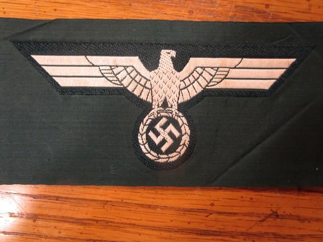 Fred Green Posted September 28, 2018 Author Posted September 28, 2018 In 1939 the German army went to a slightly subdued insignia to include a light grey colored eagle on a dark green back. This lasted for about a year.