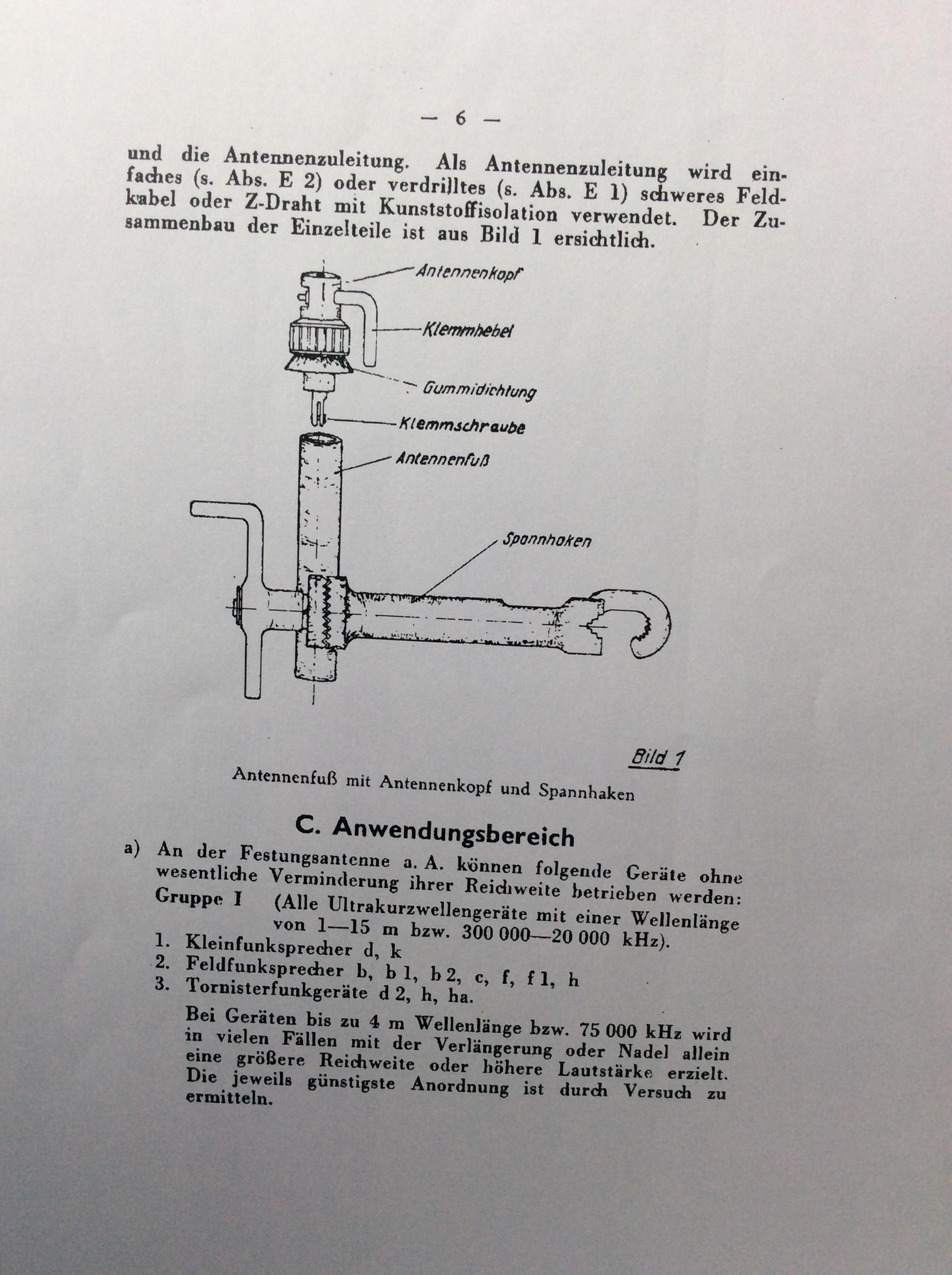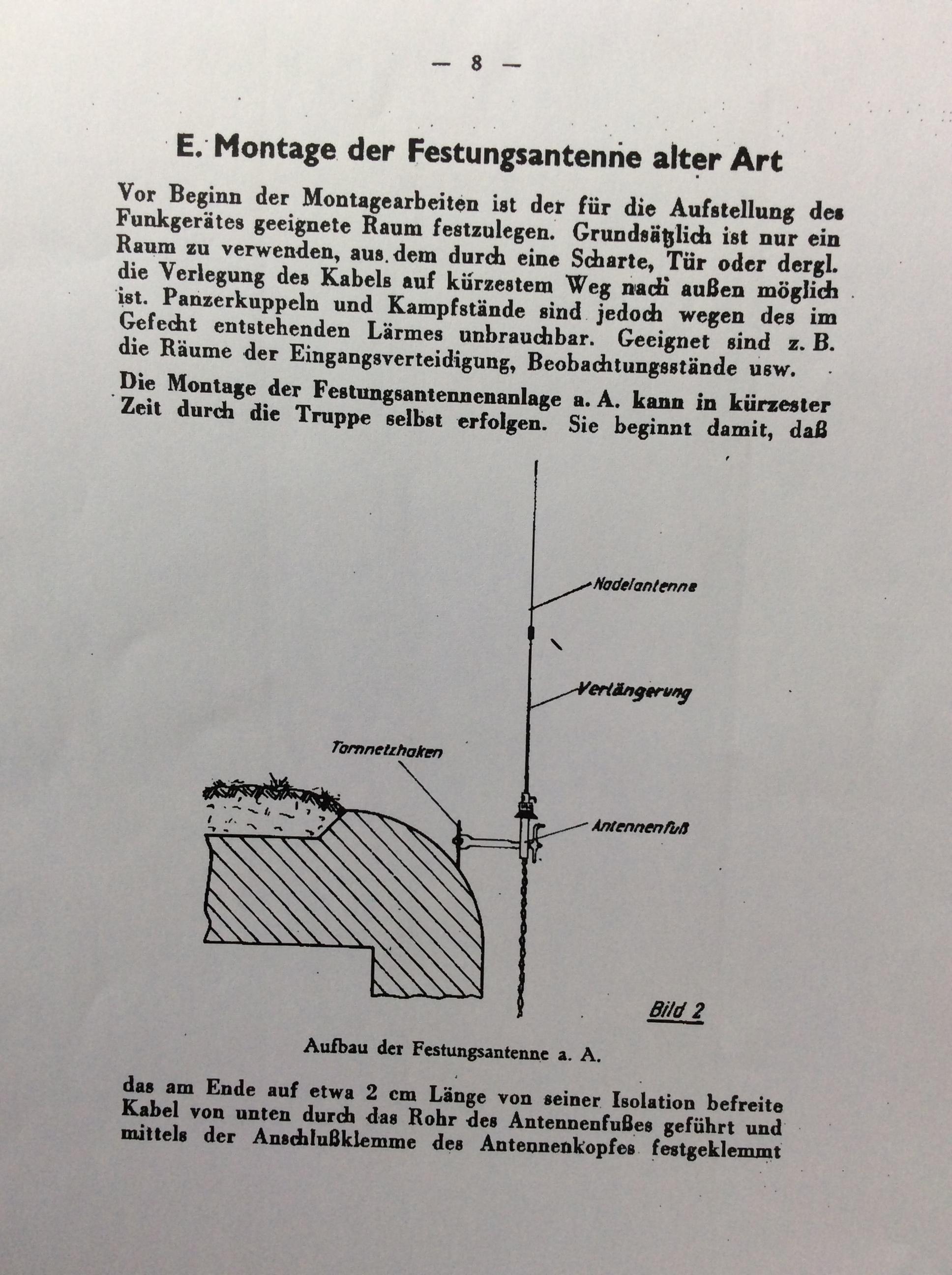 tornfuté Posted March 6, 2019 Posted March 6, 2019 It become more easy to understand thanks FS for picture. i have readen again D1790/1 , 5, 6, i have seen inside those notices that there Is also D1790/2 and D1790/4 has anybody knowledge of D1790/3? i can buy one time copy of D1790/2 but 100€ for copies too expensive we are always speaking about the emergency antenna put in a well or duct but they are others antenna used and connected to set by other way sometimes they use the N4 with a self made support for antenna or they used side of bunker to connect an antenna . i post here some pictures seen in D1790/6 , where we see an antenna base alter art , so meaning that there is also a n A neu art . the funkschrank illustrated in bunkerforum is what i had said in a previous post but i was’nt aware that 2 different type exist. it stand near niche 4 in entry just near N4 it has sense if set ,antenna, are stowed there