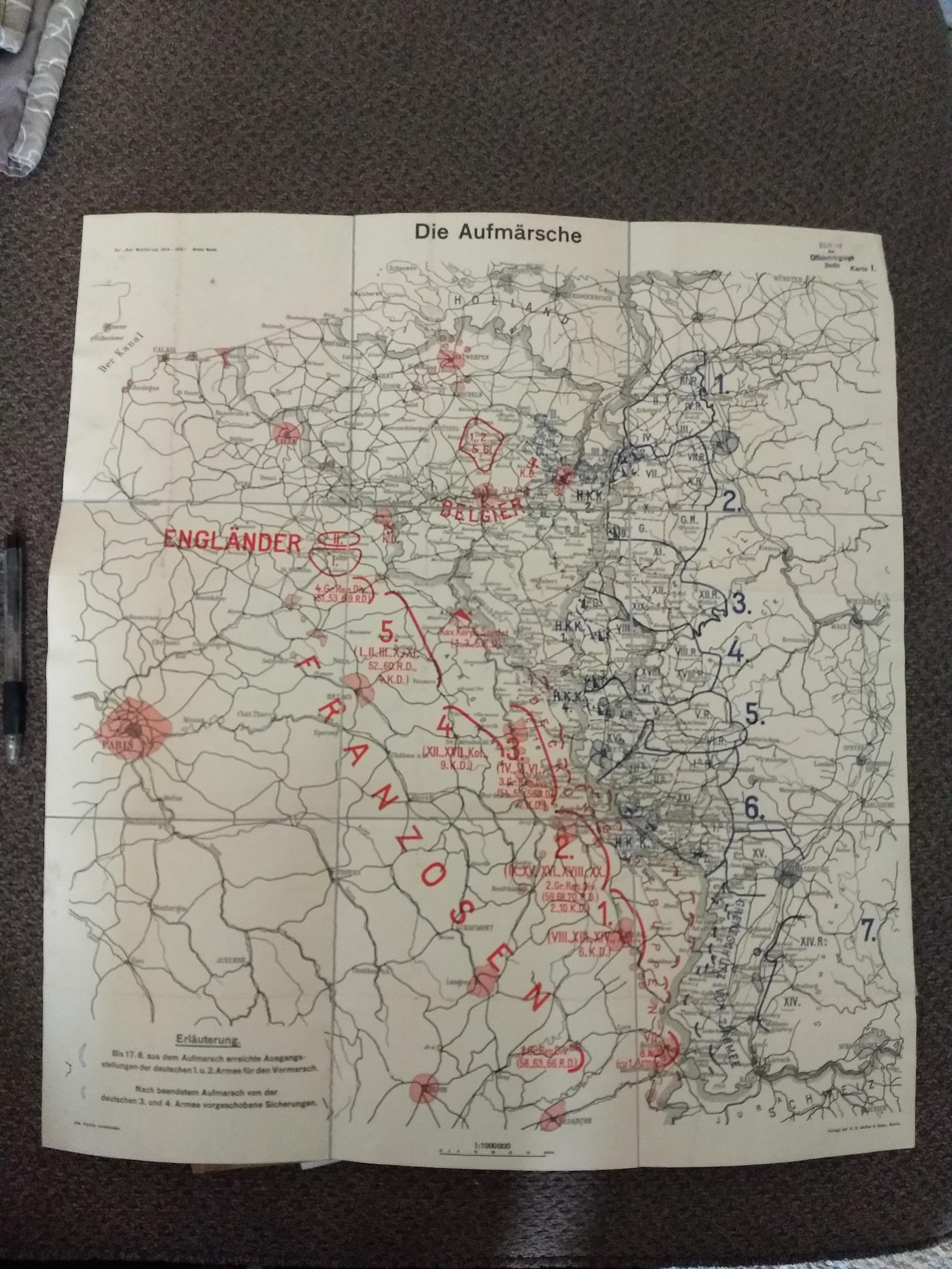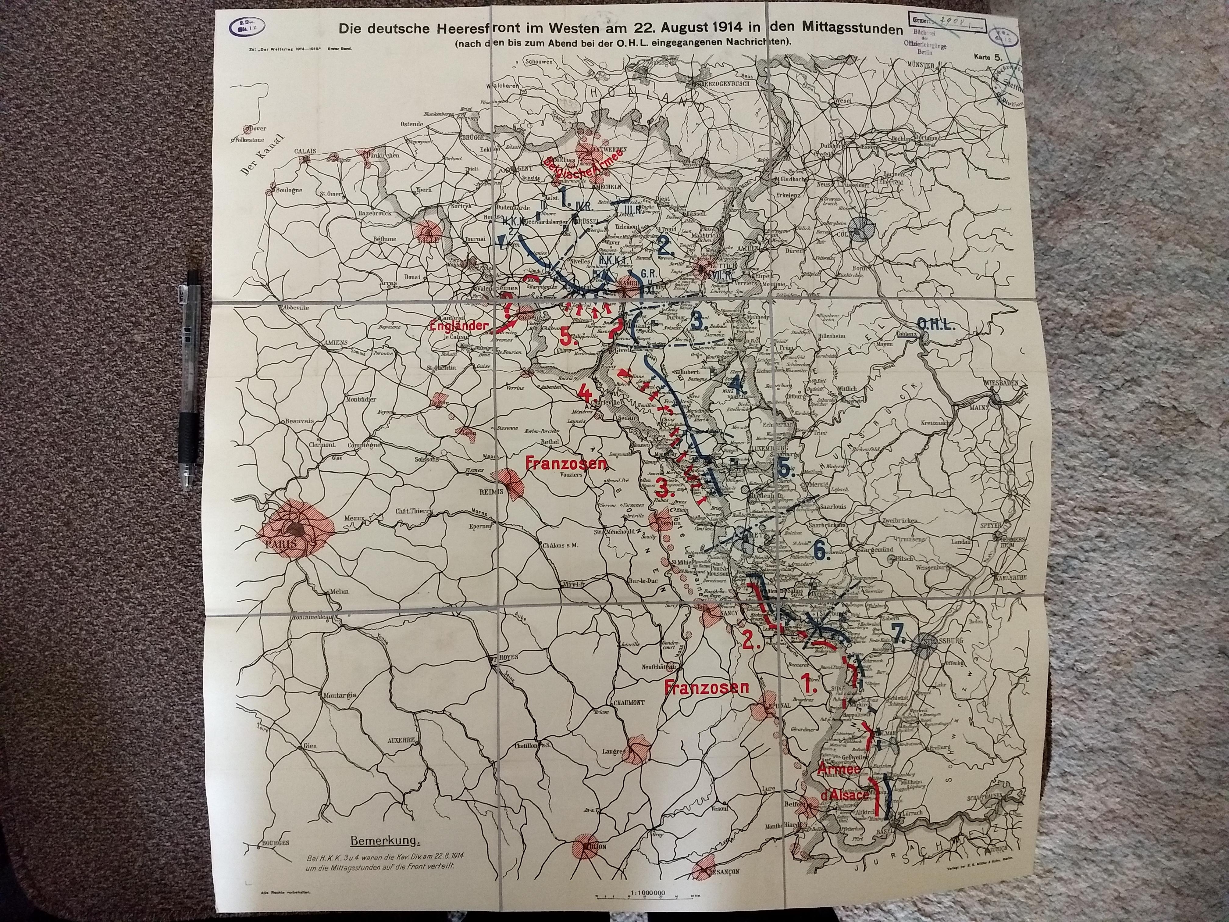 Mike H Posted March 30, 2019 Posted March 30, 2019 Got these WW1 maps from the Berlin War Academy, used in the 1920's. Linen backed, very durable as they would have to be. Interesting to think just who may have studied these at the time. Pen for scale. Some are quite large. 1 1 1