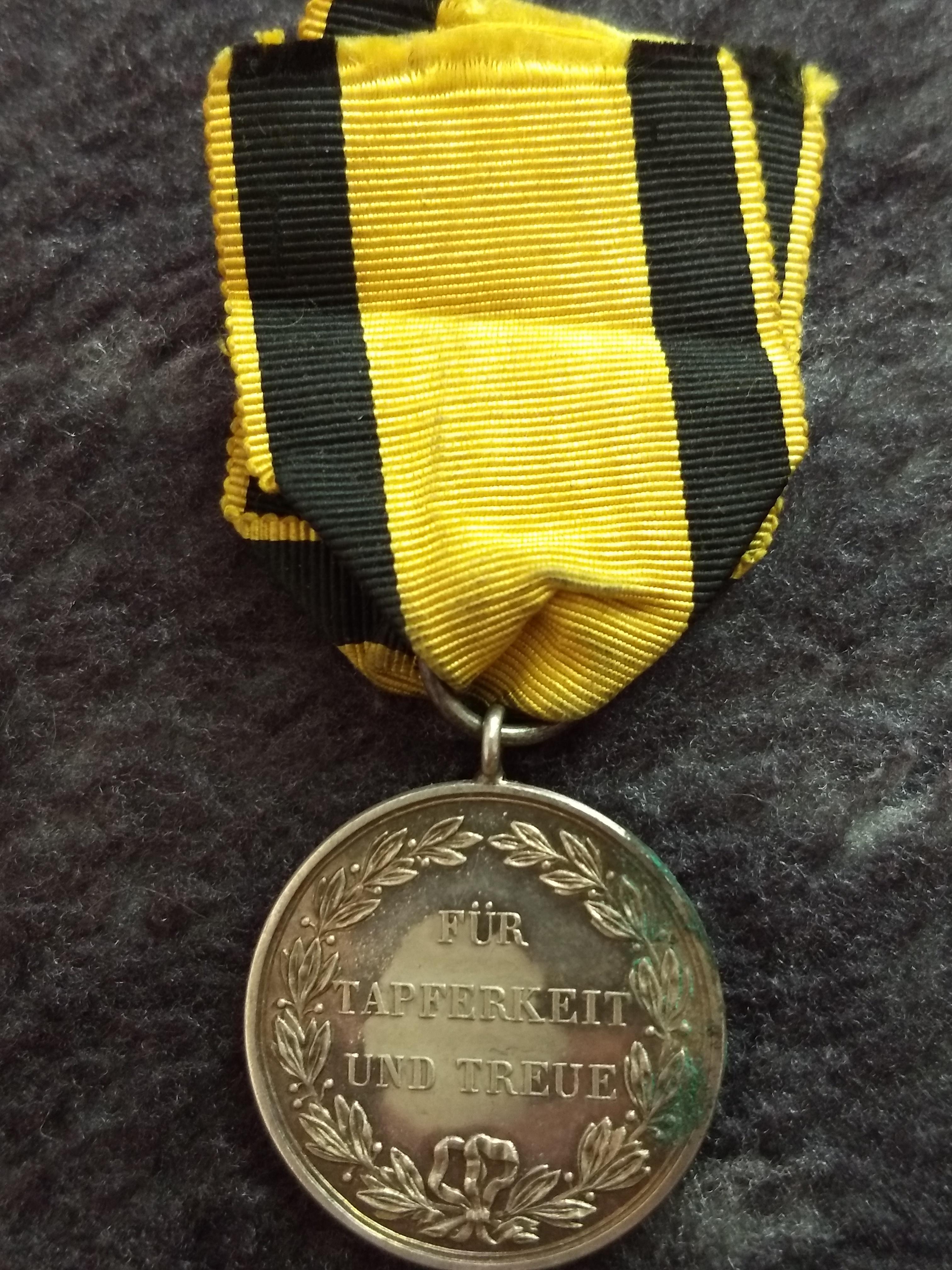 Mike H Posted October 5, 2019 Author Posted October 5, 2019 Reuss Silver Merit Medal w Swords, awarded to other ranks below NCO. This one is on Reuss's war ribbon which was authorized early January 1915. I have seen both Jan 5th or the 9th mentioned. 1