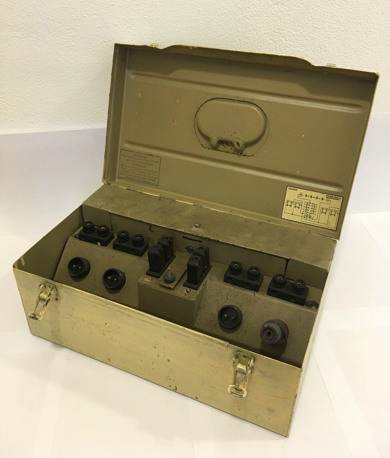dufleuve Posted August 6, 2020 Author Posted August 6, 2020 Hello folks, I got today this box : Fernsprechgerät for light and middle flak. Same as the one starting the thread, but with interior fittings. Exterior has been either cleaned/refreshed by some previous owner and color is a bit yellowish. Inside appears complete, except the self ? ampli ? in the middle of the circuit. I assume the compartment at the back is for batteries ? Note the use of Franz Lange type connectors along classical phone lines ones. Interesting ink stamped notice about using the FFK with the device. Wondering how the connection was setup on the gun side. I never saw a picture of a 3,7cm or 2cm flak with a phone type connection like heavy flak. Cheers