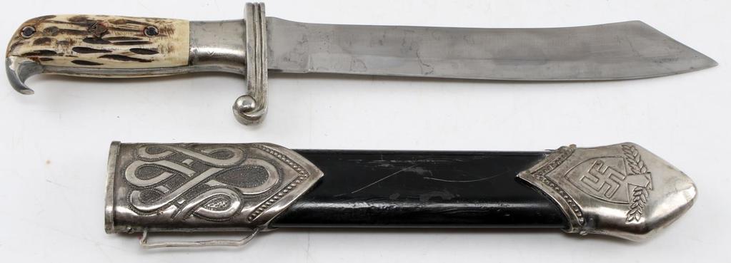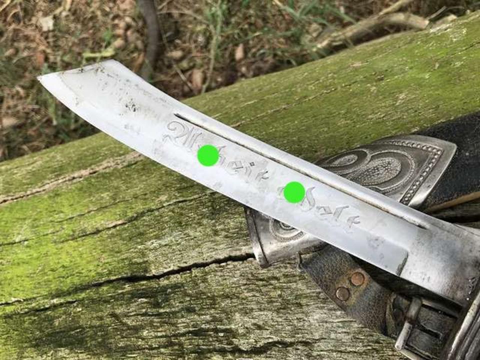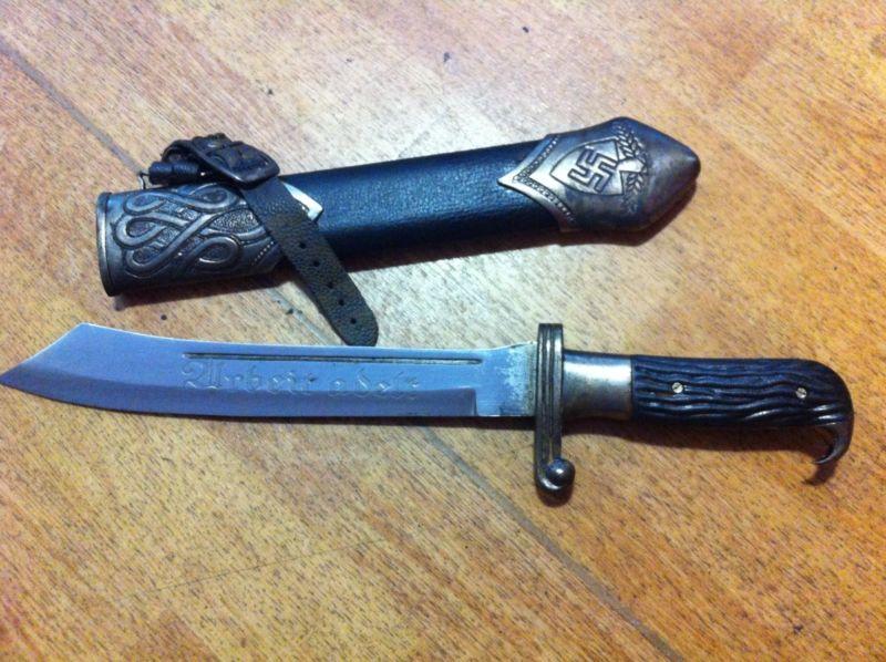 Gwar Posted November 5, 2019 Posted November 5, 2019 Yesterday evening Rich and I had a conversation about RAD buckles that were faked. There are many spurious items being offered as legitimate when they are not, some are very dangerously convincing. I will show some of the most prevalent ones and try to offer tips on how to spot these. First up a very bad rendition of the hewer with a rather black grip and scabbard compared to an original, one should easily see the quality difference immediately. The blades motto "Arbeit Adelt" ( Work Ennobles ), the maker mark and the RAD acceptance mark are on the wrong sides. The scabbard is dull and mundane, the lines are not present in the circle eight type pattern and the bottom is also void of any real quality we would see in a original. These types are currently found to be marked " Boker ". The stag grip handle screws are also pretty bad and look like ordinary screws, when one judges by the original that are semi slotted and recessed, hence the newest fake with the more stag like colored grip and slotted screws but with a twist, a added fake RAD insignia on the grip. The motto and proof marks are still reversed and that along with the added bling on the handle and also marked "Boker", with the same shoddy scabbard should raise a red flag. Hope this helps someone when contemplating making a purchase. G 1 1