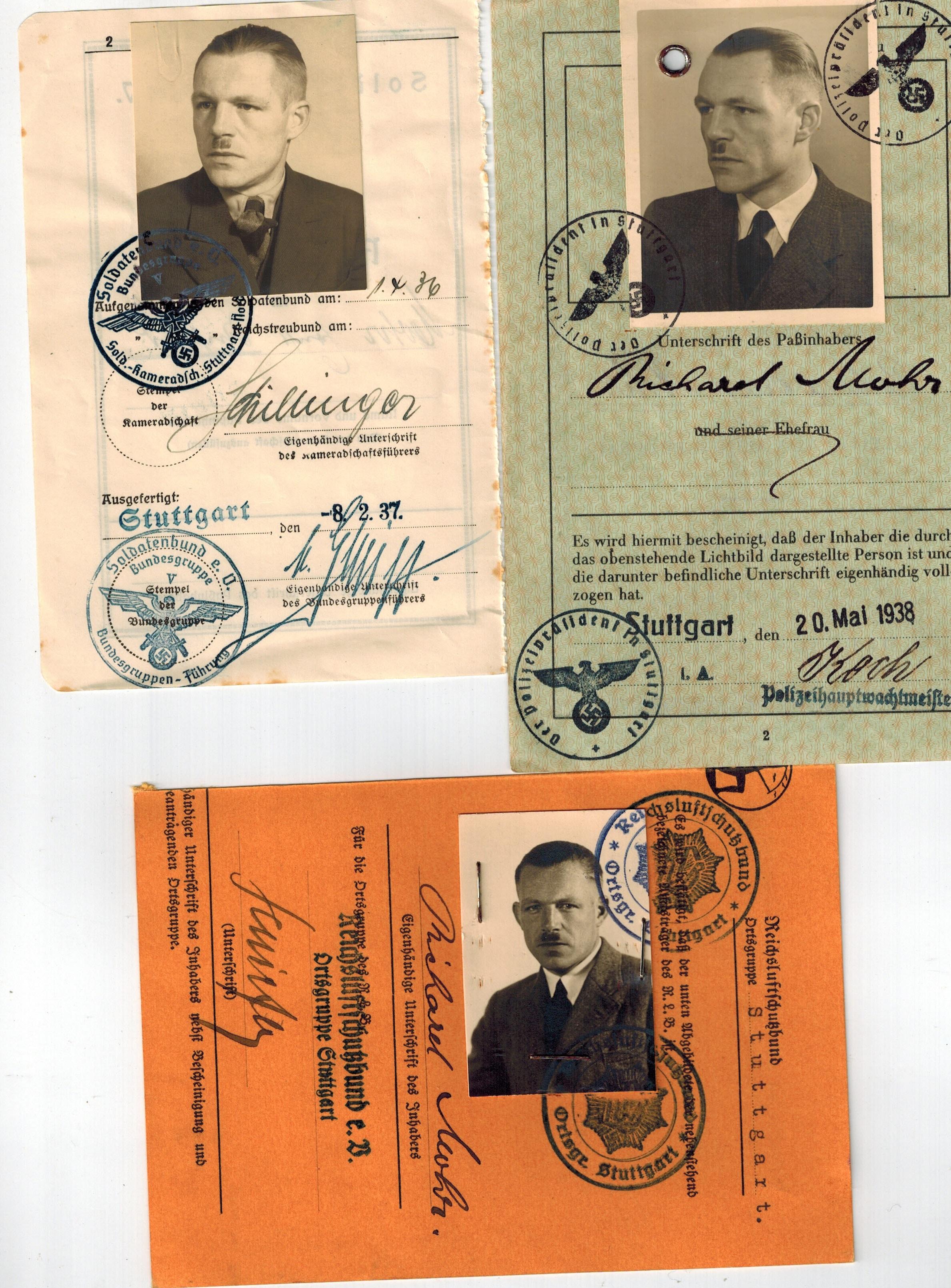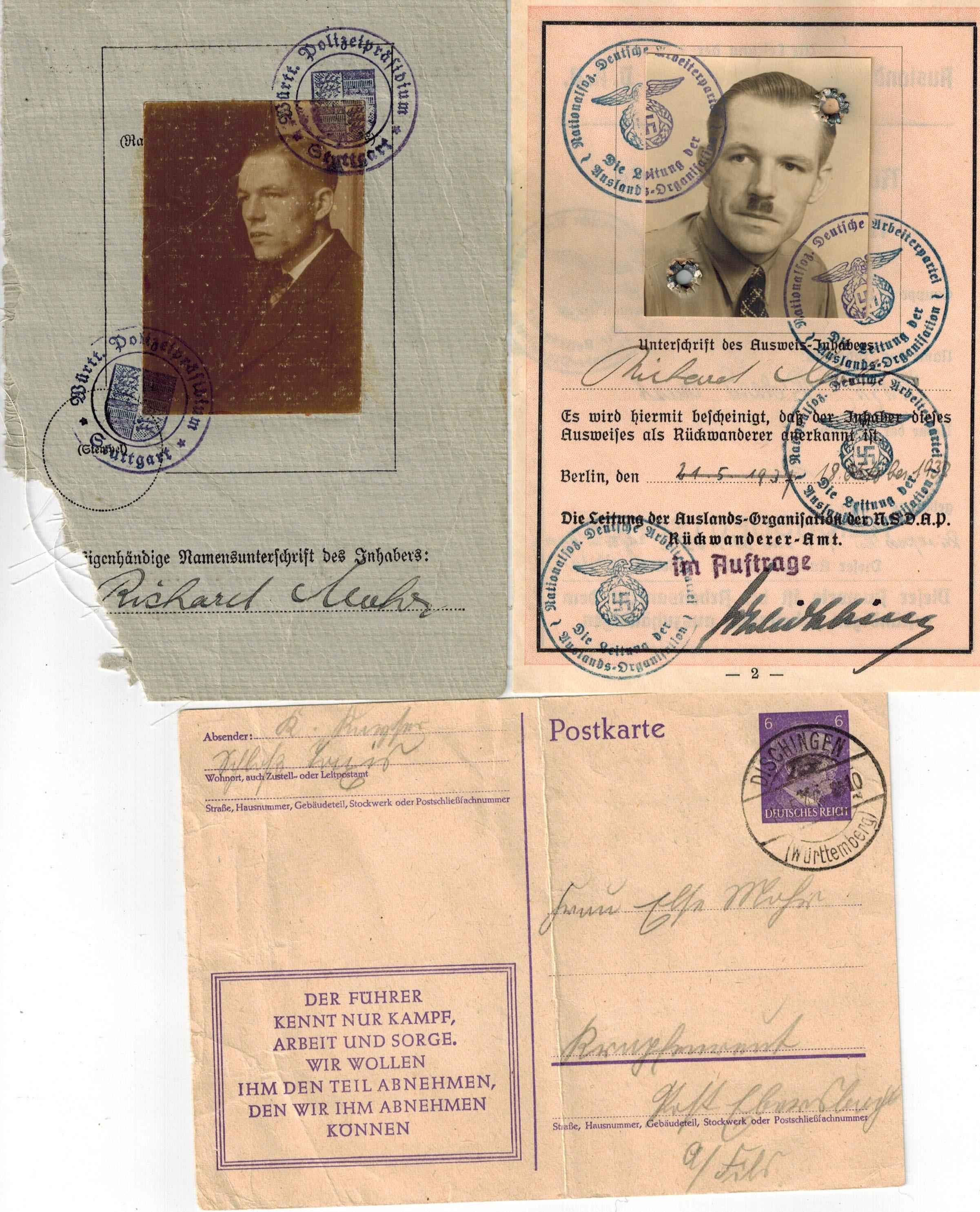 Richard Auld Posted July 20, 2020 Posted July 20, 2020 Guys, Don't know what has gone on here but I would guess the pages were saved because of the photos? No idea! I like the Kleiner gartener ausweise for discount travel, definateley a new one for me! Also th esaf econduct pass from the Weimar era is new. Would be keen to see the complete book for the Ausland org der NSDAP? The post card would be a bit alarming to receive?