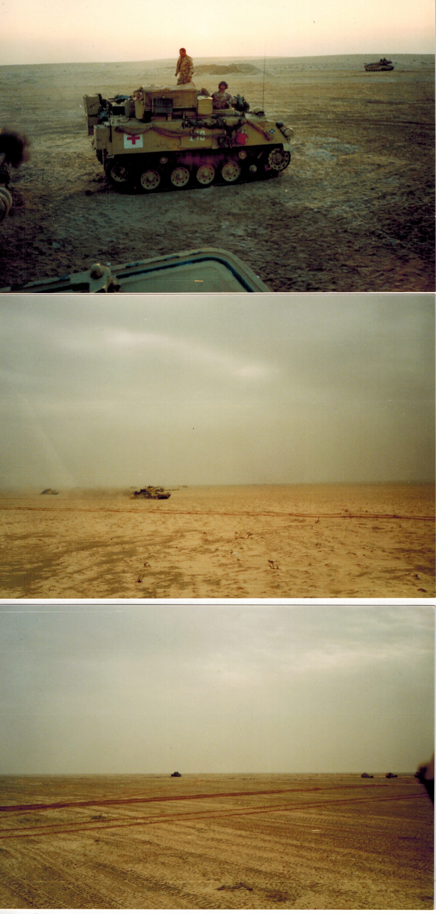 Richard Auld Posted October 24, 2020 Author Posted October 24, 2020 Then it was time to get the job done, last pics in camp in front of the PADs Land Rover, a quick pic of the Warrior crew, Me with the issue 'sex pest' glasses, John 'head' Archibald, Capt Jullian Free (recently retired as a General), John 'Smarty' Smart and lastly 'Malcy' Malcolm. Our Ferret scout car that used to be mine as the forward observation party had a FV432 for the officer and the Ferret for the 'FOO Ack', ie, me. This changed when we were issued a Warrior Command variant or FV 511 complete with the cannon that does not feature in the OP variant that 4 Regt RA got for Christmas. My favorite shot is the one the Boss took being as he was in the right of the turret, of the Lynx's TOW helicopter shooting through the ranks of the tanks of C Squadron Scots Dragoon Guards. Always an avid collector me with my AK one of which still functioned after being run over by a Challenger Tank when we took some prisoners. 1