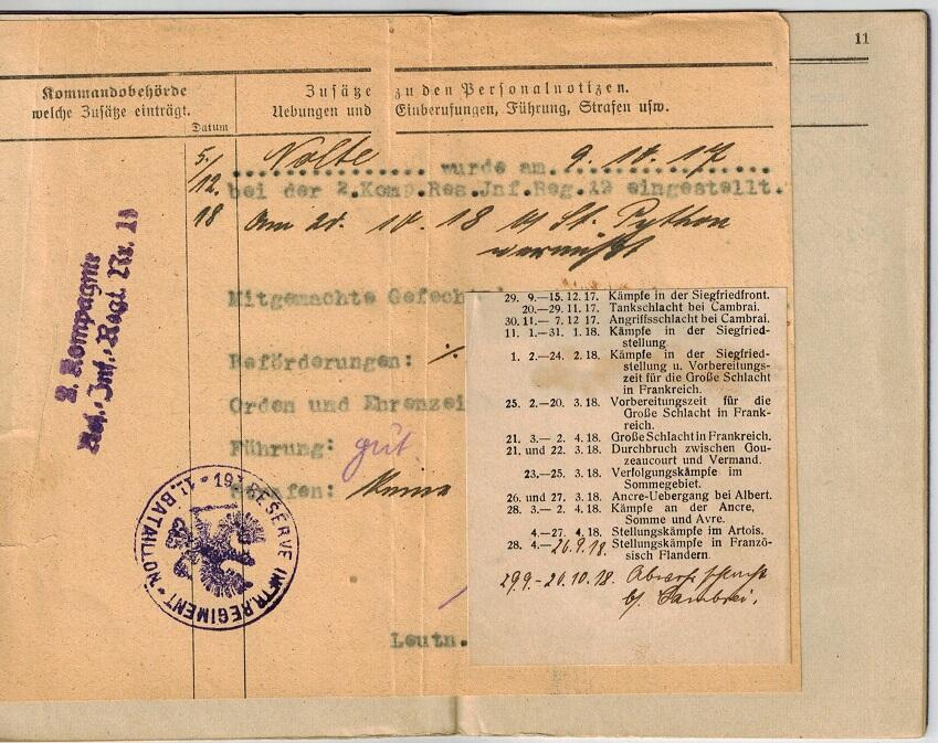 Richard Auld Posted August 28, 2020 Posted August 28, 2020 Guys, small group yesterday, I have posted the more interesting parts, the WP is empty except his personal data and Landwehr II entries, these are the sort of books that are being made into KZ camp gaurds etc. His Soldbuch has a Gas 'merkblatt' pasted in the back cover, never seen that on a WW1 book before, least not as I can remember. Ho got the EK 2 in 1918 it is under the pasted in battles extract his last action a pen entry for defensive battle in Cambrai, next entry is release from hospital in 1919 so thatwas his last action and no doubt badly wounded. Rich