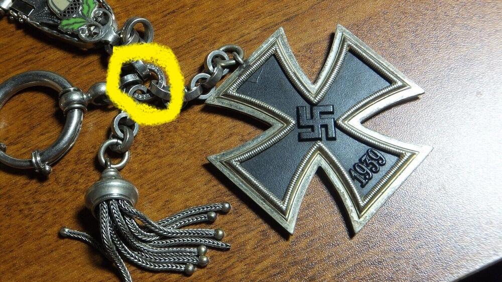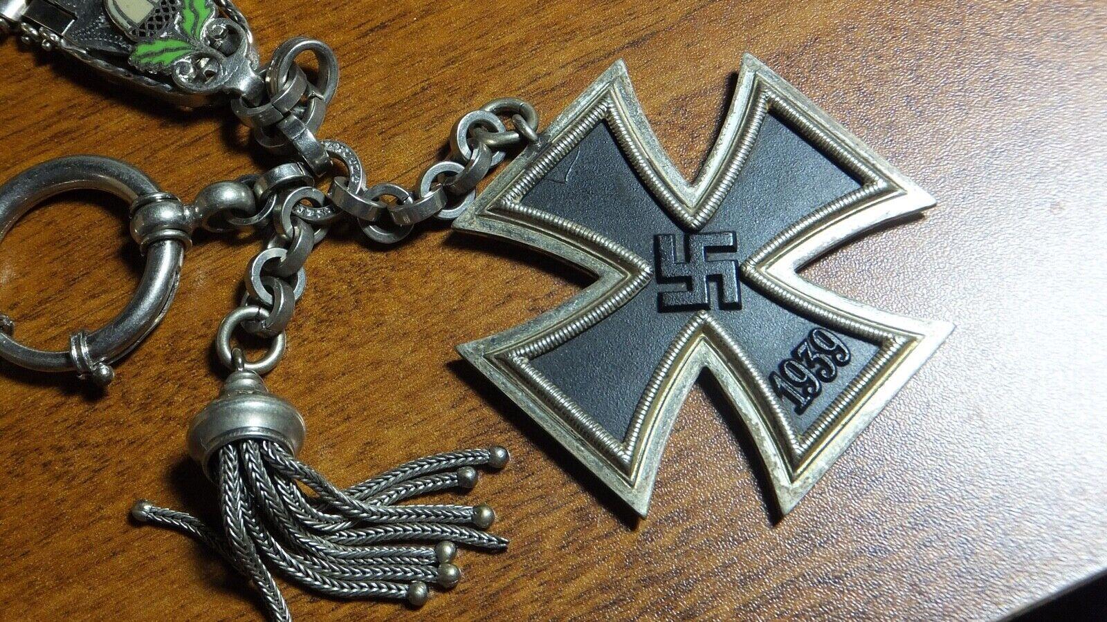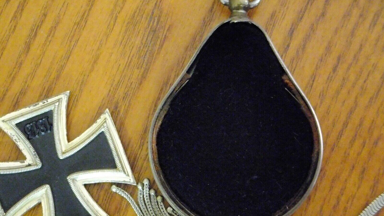 edteach Posted June 21, 2022 Posted June 21, 2022 Seller is asking 200 for this. I asked a few collectors about the cross and they said it was an original very good condition. The watch fob makes me think it may be military also. The oak leaves and acorn and the way the metal loops are made remind me of the Luft dagger first model chain. The DGRM on the watch protectors case. Have you guys ever seen one like this? 1